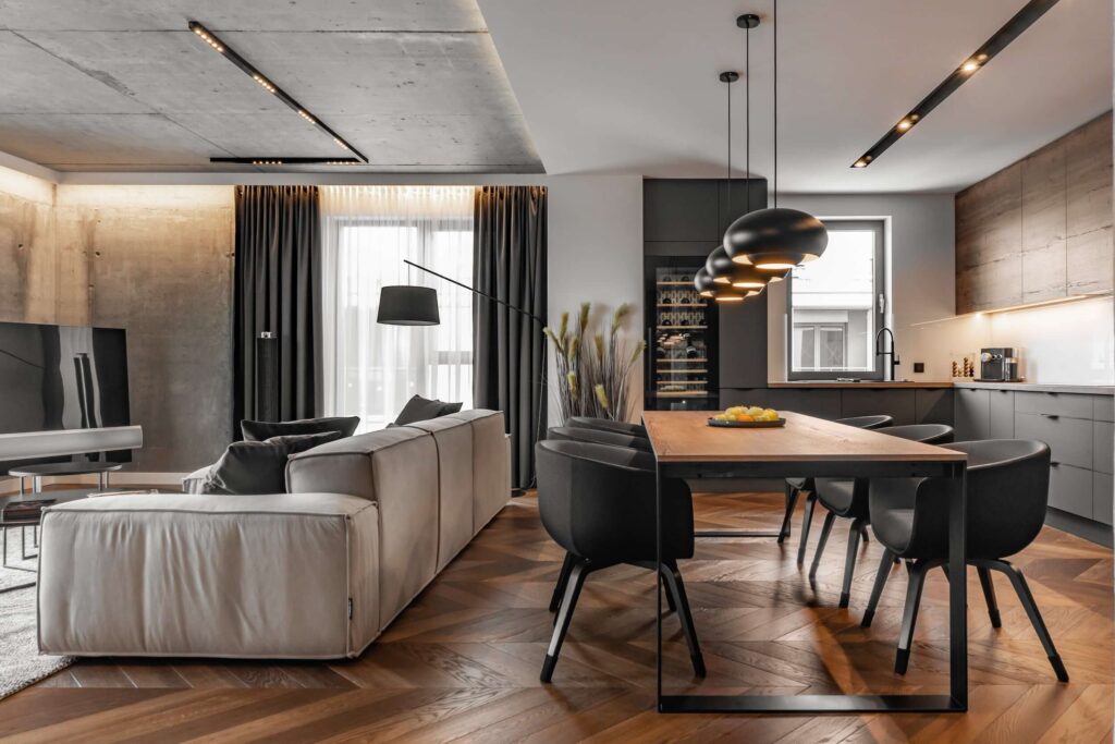 Wnętrza nowoczesnej stodoły opierają się na otwartych, dobrze doświetlonych przestrzeniach. Wysokie przeszklenia, antresole i otwarte strefy dzienne sprzyjają poczuciu przestronności. Jednak wymagają precyzyjnego zaplanowania instalacji, akustyki i ogrzewania. Funkcjonalność wnętrz wynika więc nie z ich wielkości, lecz z logicznego układu i jakości detali.